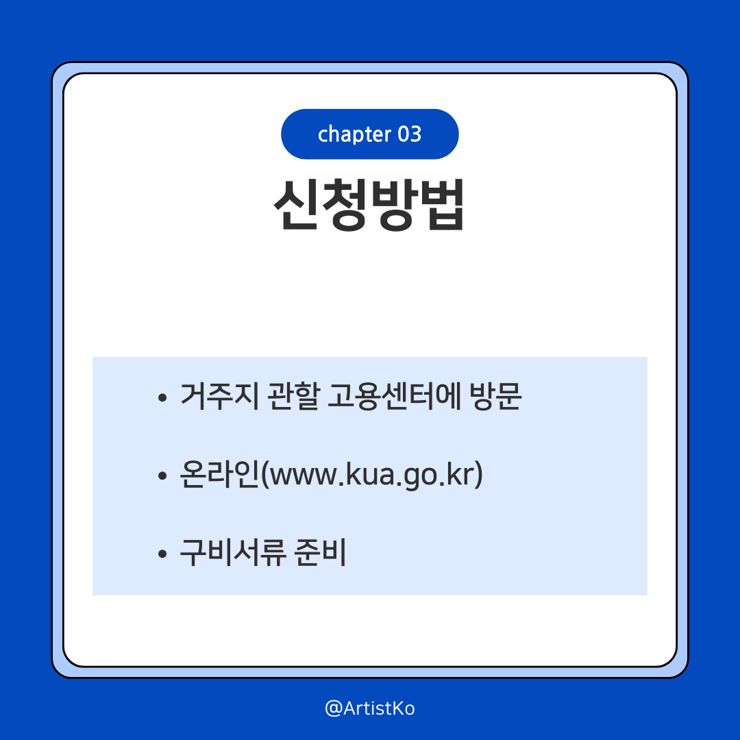 - 고용복지플러스센터 또는 관할 고용센터 방문 접수